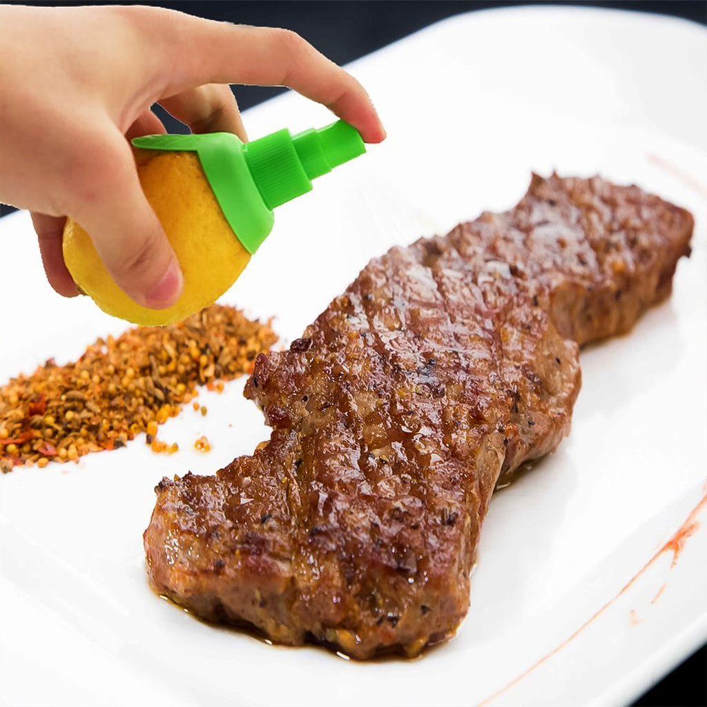 - KITCHEN GADGET SET: Spray citrus fruits directly from the fruit to dress their recipes or flavor their soda and cocktails in the freshest way. Mainly applied to soft flesh, such as lemon, orange fruit. Some fruits have hard skins, you can cut a piece of skin from the top and insert the lemon juice sprayer. Provide the freshest juice for your delicacies in the most amazing way!