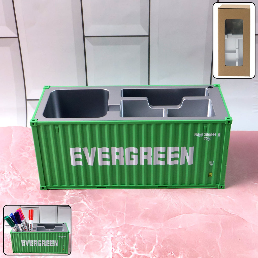 Container-Style Multi-Compartment Desk Organizer – Creative Storage Box for Stationery, Office Supplies, Makeup & Accessories – Durable Plastic MAERSK Container Pen Holder Organizer for Home & Office Desk