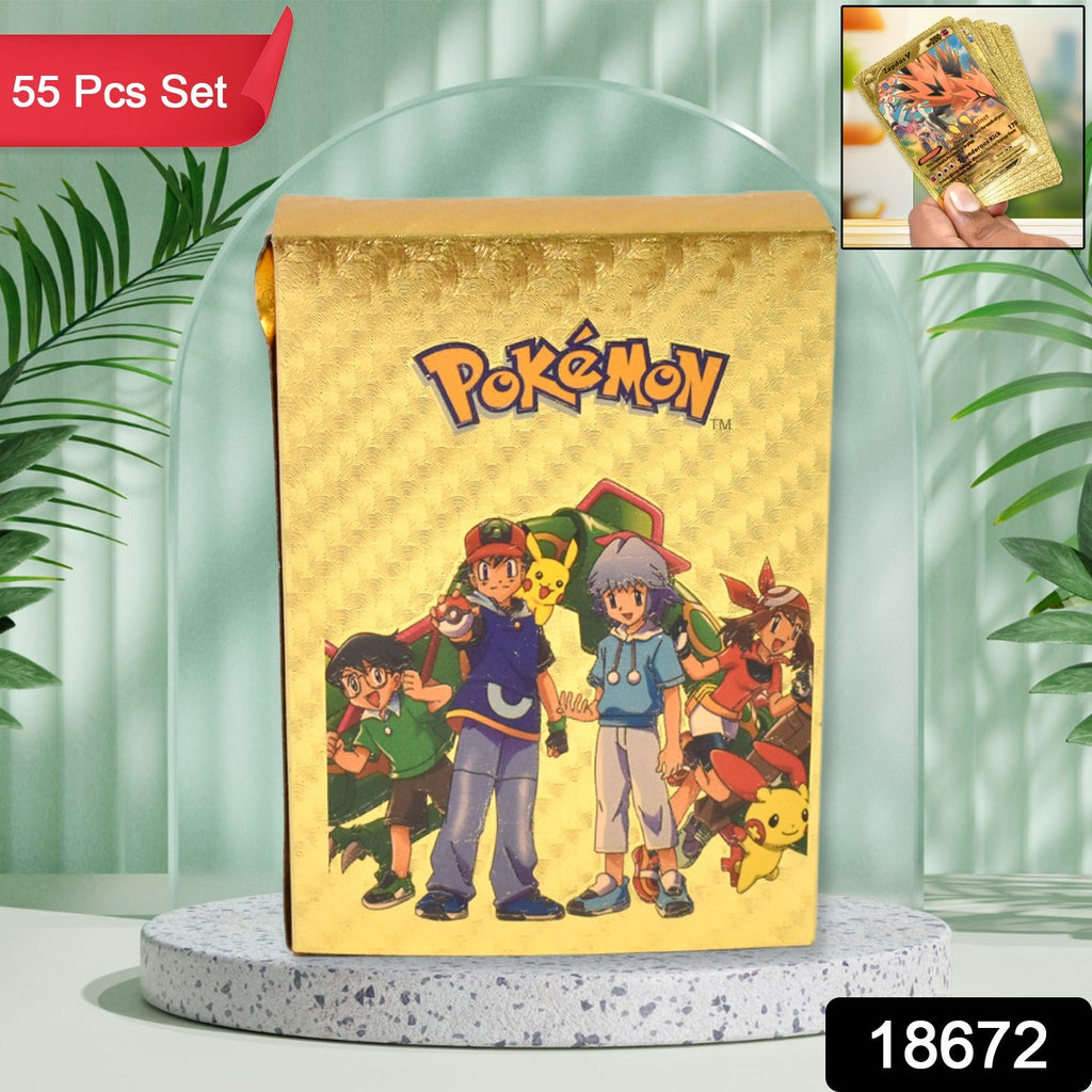 Pocket Monster Golden Trading Playing Cards Premium Quality Playing Cards Foil Card Assorted Card, This cards can make your kids play all the time (55 Pcs Set) (55 Pcs Set / Mix Design)